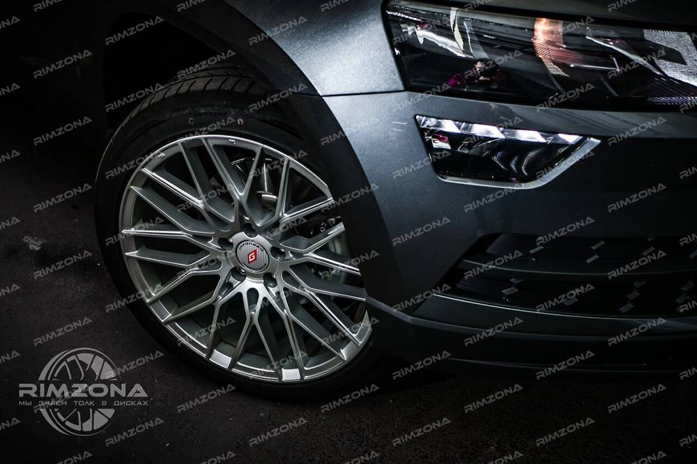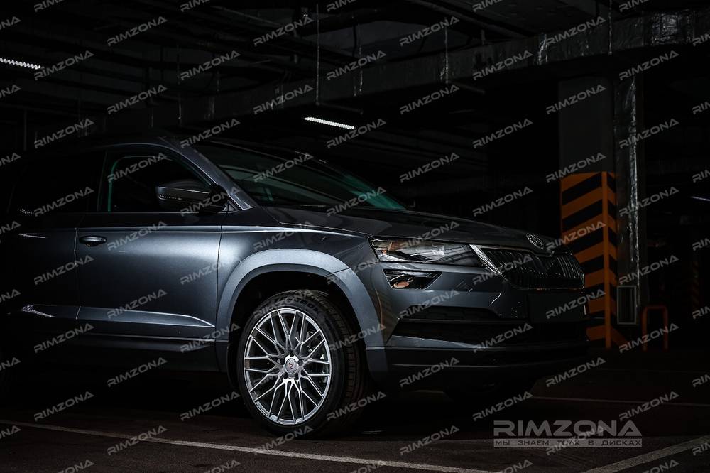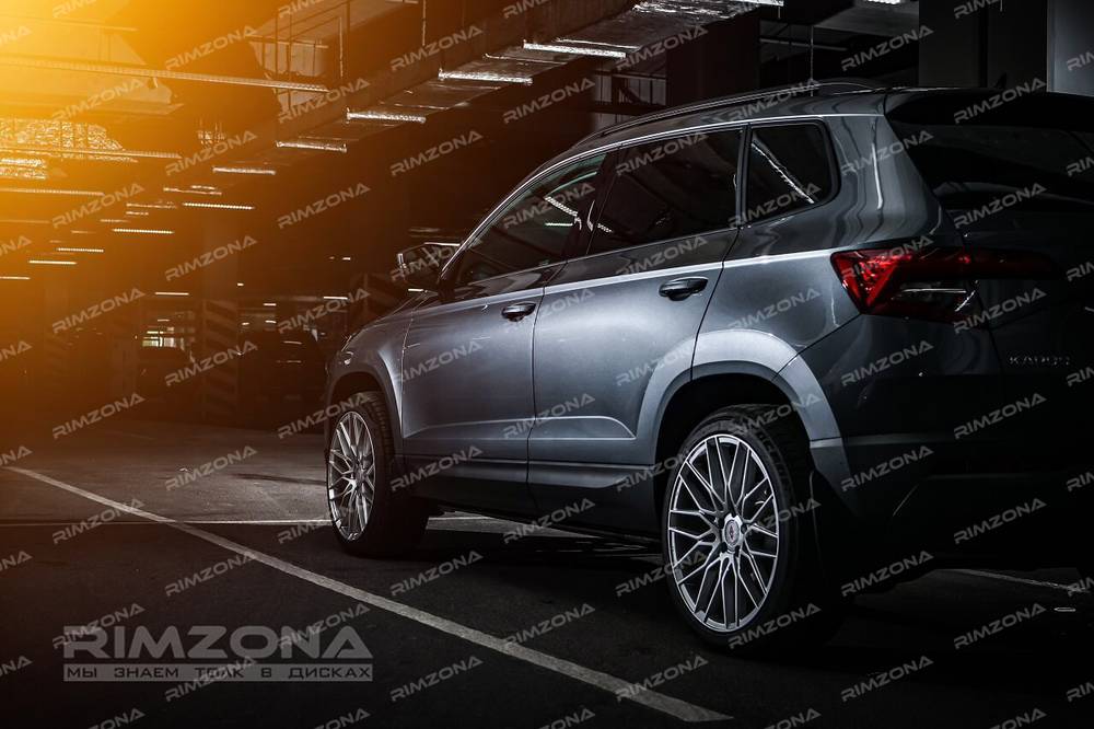 На авто были выбраны 18-ые диски модели Inforged IFG34. Спицы литого диска образуют идеальный узор – многоконечную звезду. Такое решение сочетается со строгим дизайном кроссовера и добавляет образу солидности. Универсальный серебристый цвет литых дисков на Skoda Karoq R18 подходит к любому цвету ЛКП, но с голубым он смотрится особенно интересно. Благодаря обновлению автомобиль приобрел более взрослый и нарядный внешний вид.